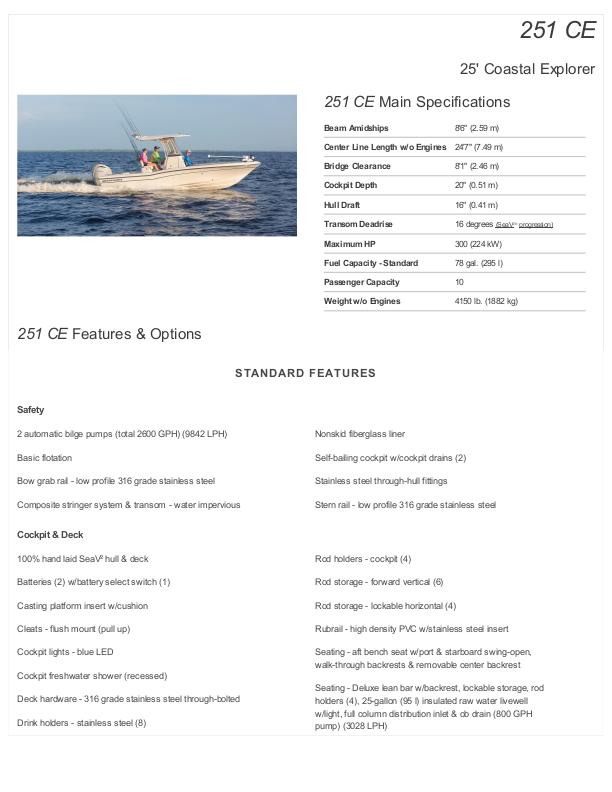 | Transom Deadrise | 16 degrees (SeaV2® progression) |